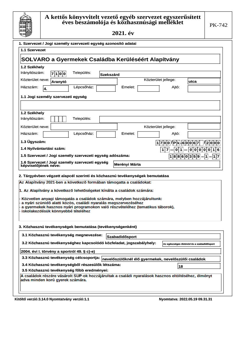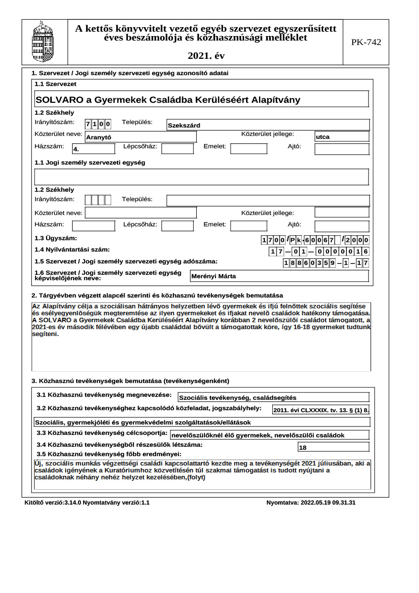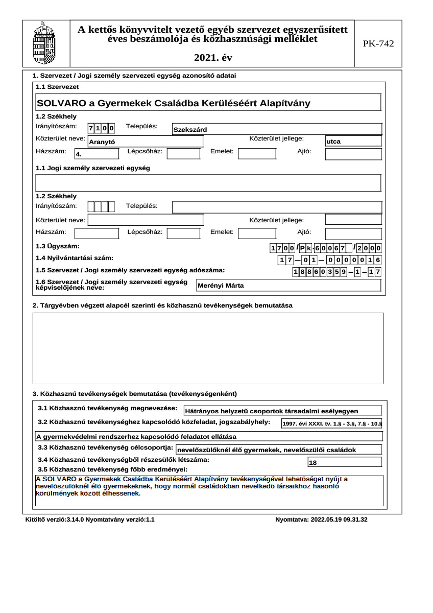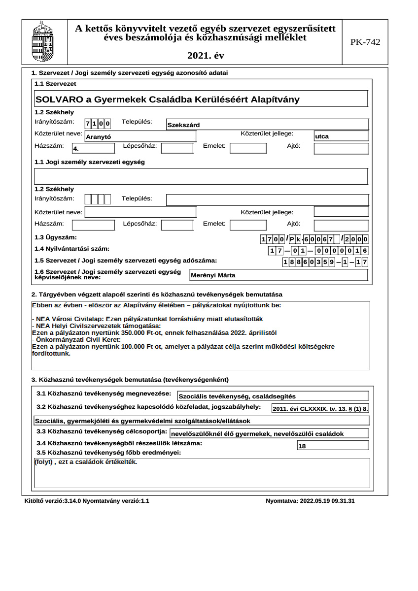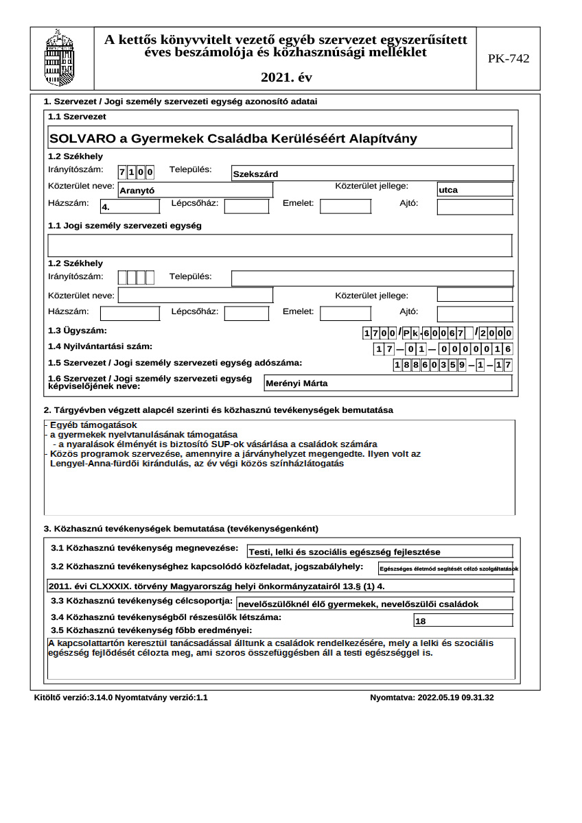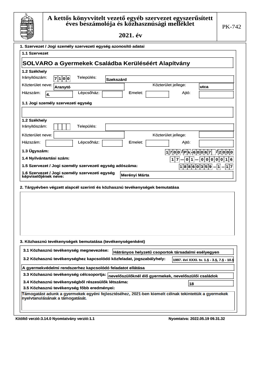 Éves beszámoló, közhasznúsági jelentés