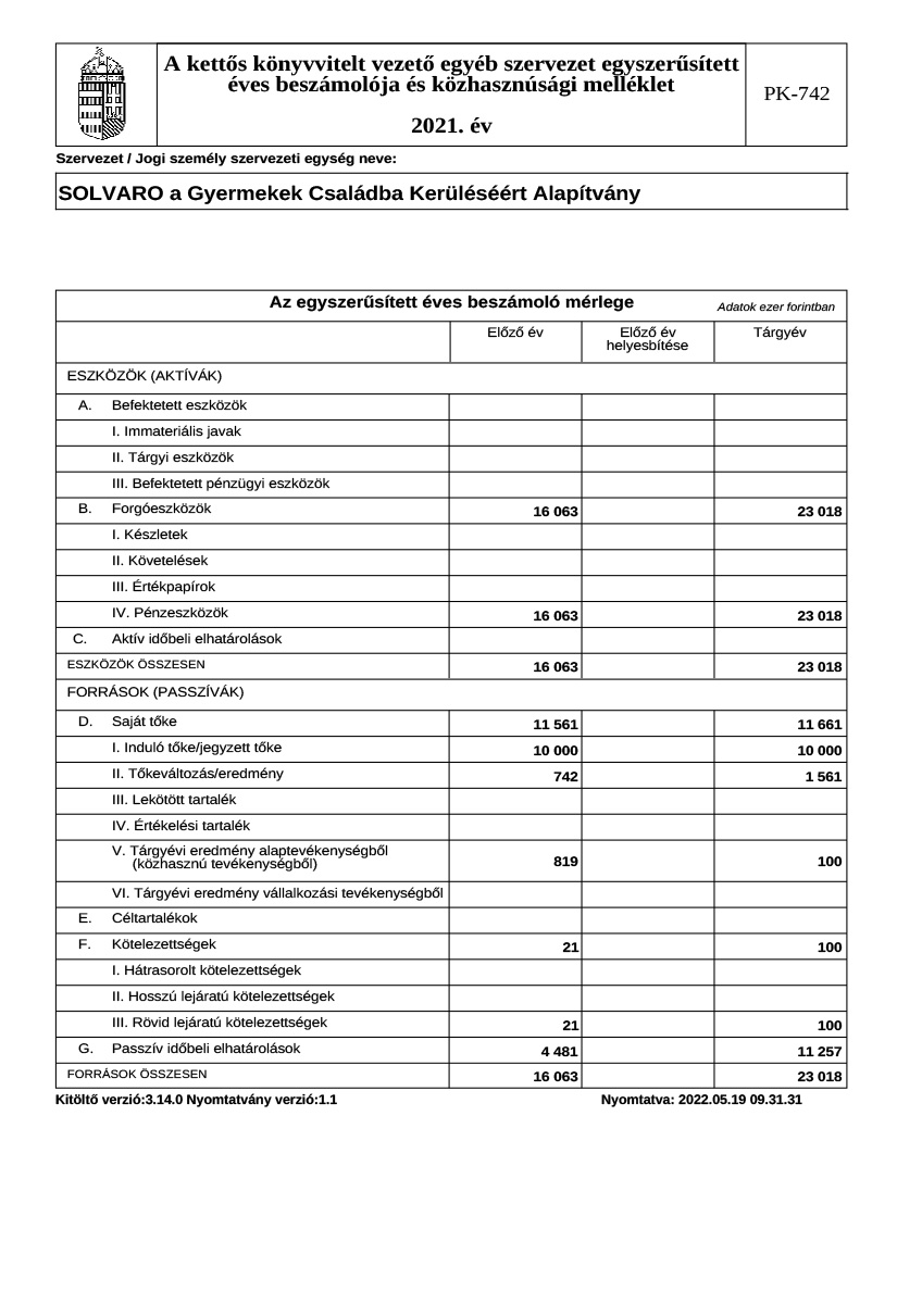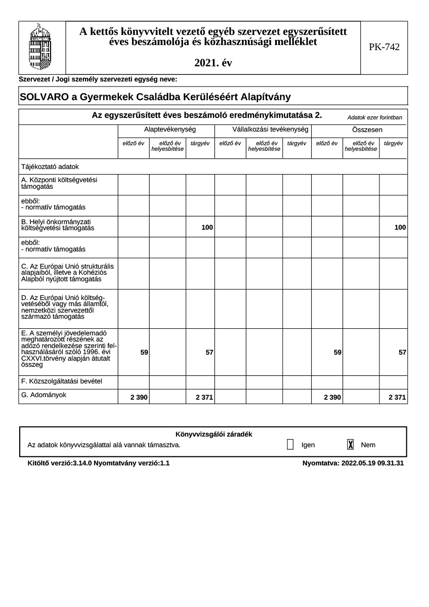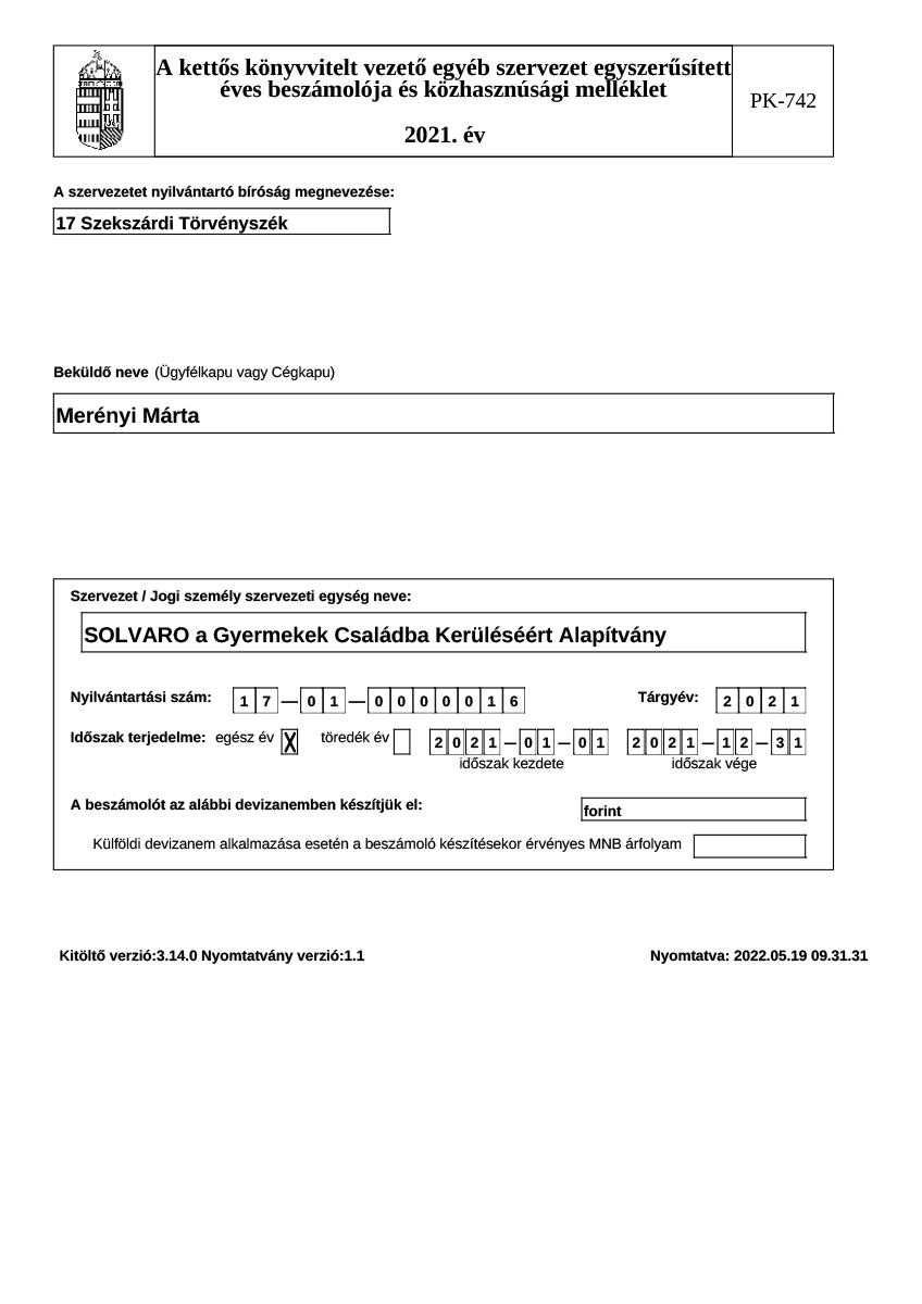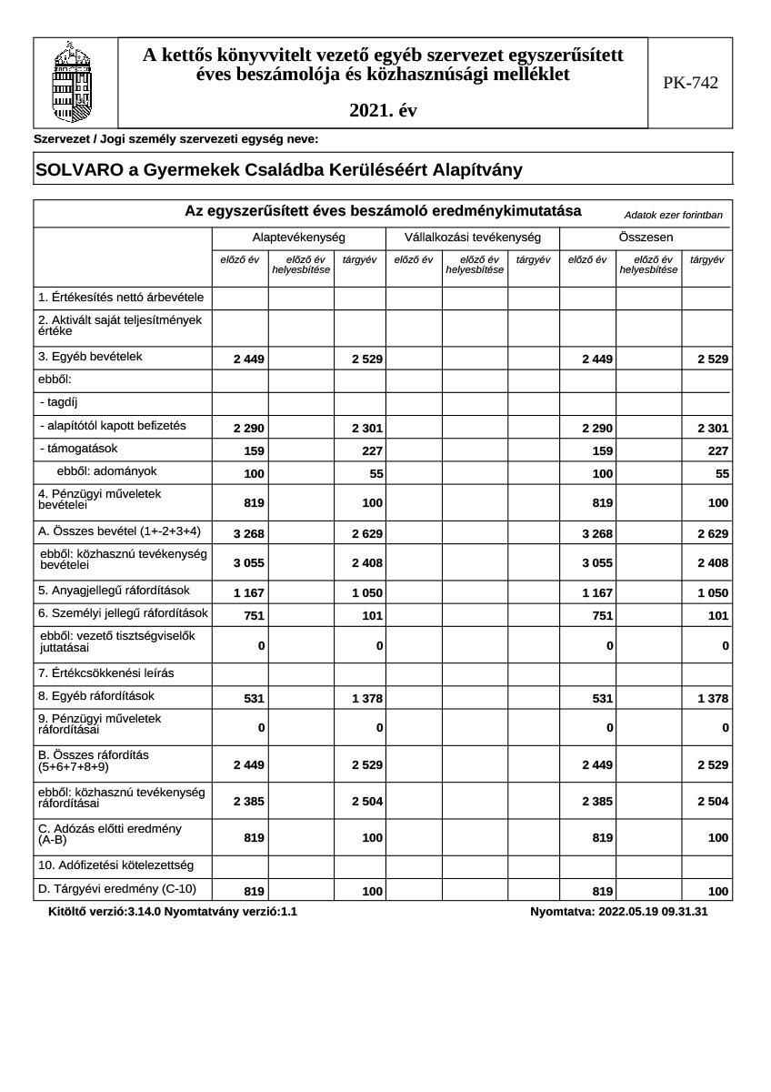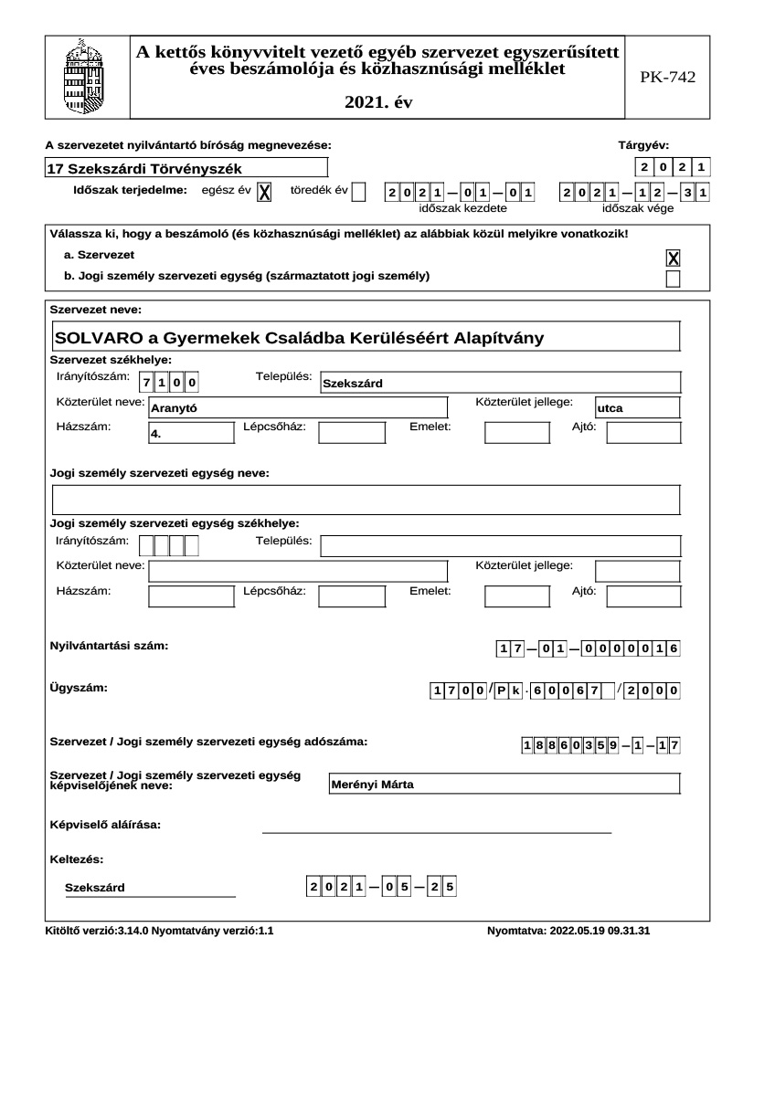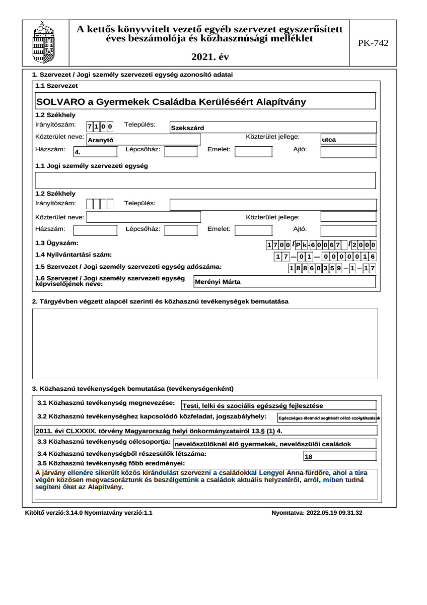 Éves beszámoló, közhasznúsági jelentés